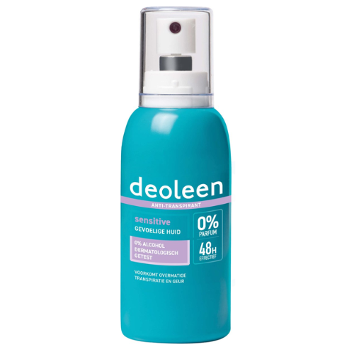 Deoleen Sensitive pompspray anti-transpirant is speciaal samengesteld om effectief en op milde wijze overmatige transpiratie te voorkomen, zonder de natuurlijke balans te verstoren. Deoleen camoufleert de transpiratiegeur niet met sterke parfum, aangezien parfumstoffen allergieën kunnen opwekken. In plaats daarvan neutraliseert Deoleen de transpiratiegeur door ongewenste bacteriegroei te voorkomen. Deoleen, Voorkomen is beter dan camoufleren.