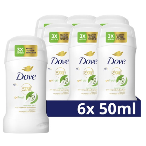 - Dove Advanced Care Go Fresh Cucumber Anti-Transpirant Deodorant Stick