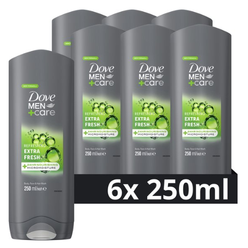 Dove Men+Care Extra Fresh 3-in-1 Douchegel - 6 x 250 ml - Voordeelverpakking