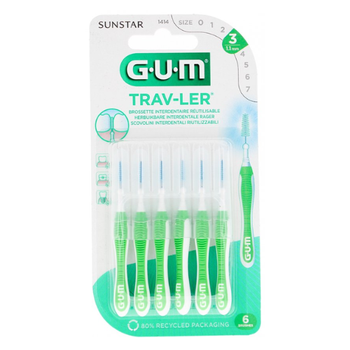Met GUM Trav-ler Ragers groen kun je de interdentale ruimtes van je gebit grondig reinigen. Dit zijn plekken in je gebit waar je (elektrische) tandenborstel vaak niet goed bij kan. Des te fijner dat GUM Ragers dat wel kunnen, zodat je minder kans hebt op bijvoorbeeld gaatjes en bloedend tandvlees. Het voordeel aan de groene GUM Ragers is dat ze een conische vorm hebben. Dit betekent dat ze smal beginnen en dan wat breder eindigen. Op die manier kun je meerdere groottes van interdentale ruimtes met één GUM tandenrager reinigen. Heel handig dus!