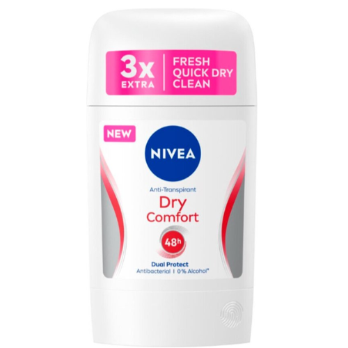 NIVEA Dry Comfort Anti-transpirant Stick geeft je 48 uur lang betrouwbare bescherming en een zachte aanbreng. Dit komt door de nieuwe gepatenteerde emulsietechnologie Ervaar een extra fris en niet plakkerig huidgevoel. De Dual Protect formule bevat twee anti-transpirant werkstoffen voor een sterke zweetbescherming. NIVEA Dry Comfort emulsie Stick is een alcoholvrije formule en zacht voor je huid.