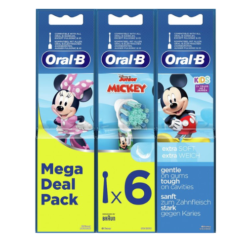 Met de navullingen van de Oral-B Kids voor kinderen vanaf 3 jaar kunnen kinderen plezier beleven aan Disney Mickey&Friends én profiteren van de milde, effectieve reiniging van een door tandartsen aanbevolen tandenborstel van Oral-B. De extra zachte borstelharen en kleine ronde borstelkop zijn speciaal ontworpen voor kinderen en zijn geschikt voor alle Oral-B Kids elektrische tandenborstels.