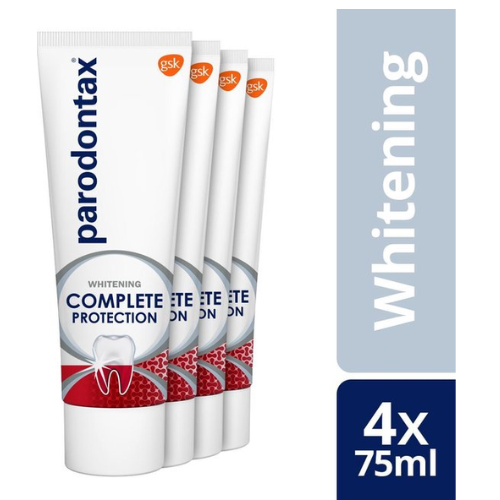 Parodontax Complete Protection Whitening has 8 benefits for healthy gums & strong teeth. And goes further than a regular toothpaste stops. It is 4x more effective in removing plaque*, and helps you with the following: Healthy gums, prevents bad breath, maintains the connection between teeth and gums, deep cleaning between the teeth, cleans for a fresh feeling, helps maintain the natural whiteness of teeth and with fluoride for stronger tooth enamel.