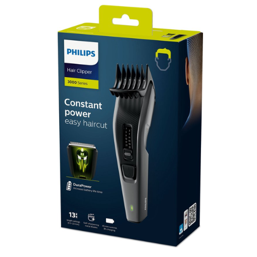 Creëer telkens weer een eenvoudig, snel en gelijkmatig kapsel met de Philips 3000 series HC3525/15 - Tondeuse. De DuraPower-technologie zorgt voor een batterij met lange levensduur, terwijl de zelfslijpende metalen mesjes zonder te smeren net zo scherp blijven als de eerste dag.