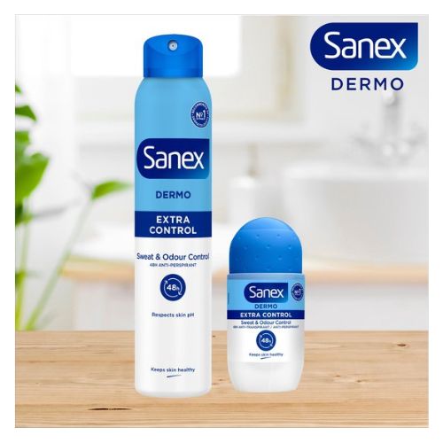 Je kunt de drukste dagen aan wanneer je Sanex Dermo Extra Control Anti transpirant Roller gebruikt. Deze anti transpirant roller is speciaal samengesteld om je tot wel 48 uur lang effectief te beschermen tegen zweet en geurtjes, zodat je aan je drukke dag kunt beginnen met één zorg minder. Niet alleen beschermt deze anti transpirant roller je optimaal tegen zweet en geurtjes, het verzorgt ook je okselhuid. De deodorant roller is dermatologisch getest en speciaal ontwikkeld om de natuurlijke pH-waarde van de huid te herstellen.