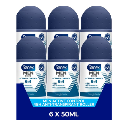 Sanex Men Active Control Deodorant Anti-Transpirant Roller 6 x 50ml - Voordeelverpakking