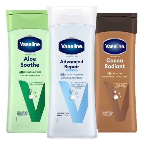 Vaseline Cocoa Bodylotion herstelt en verzacht de droge huid op intensieve wijze, om de natuurlijke glans te onthullen. Deze bodylotion is verrijkt met echte pure cacao boter. Dankzij de herstellende werking van dit pure ingrediënt wordt de huid intens gevoed en behoudt de huid zijn natuurlijke glans. Deze verrijkende bodylotion bevat vochtinbrengende bestanddelen die de droge en doffe huid helpen herstellen.